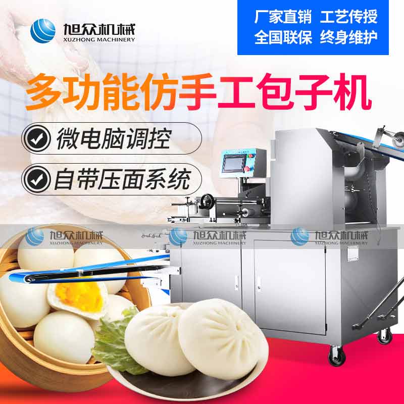 XZ-290A智能型卷面包子機,仿手工智能包子機。操作簡單、精準控制、快速成型、模擬人工。好機器,表里如一,專注品質機器,客戶現(xiàn)場試機。一臺包子機輕松解決手工和面/包餡/人工效率低,用人成本高等一系列問題。