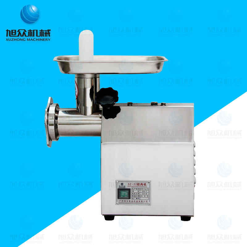 SZ-22 電動絞肉機,電動絞肉機的校孔直徑為6、8mm,本機優點具有電耐用、方便快捷、結構緊湊、外形美觀、操作方便、效率高、耗電少、清潔保養容易、安全衛生等優點。采用全封閉齒輪傳動,結構緊湊,運轉平穩,工作可靠,且維修方便;絞肉機頭及接觸食品的零部件都采用不銹鋼制造,安全無污染;機殼線條流暢,沒有可污的縫隙及無傷害操作者的銳邊,易于清潔。
