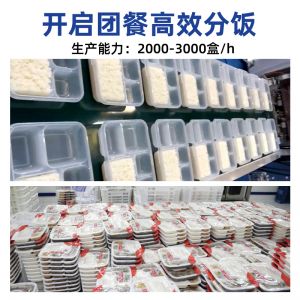 米飯分裝機,適用多場合大型米飯加工中心、快餐公司、大型配餐中心企事業單位、學校食堂、釀造企業。米飯定量分裝,自動完成分飯和計量,精準飯量。米飯先扒松再分盒,能將米飯扒松分盒,使米飯更加松軟可口。