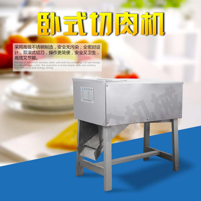SX300B 臥式切肉機,臥式切肉機均采用雙滾刀結構,有臥式和立式兩種型式。各種款式切肉機原動力和刀梳、切肉部分的原理,結構大致相同,都具有結構緊湊,外形美觀、操作方便、效率高、耗電小、清潔保養(yǎng)容易、安全衛(wèi)生、切肉效果好等優(yōu)點。
