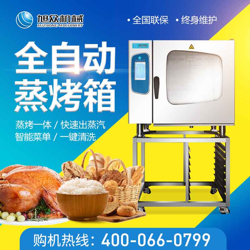 全自動蒸烤箱,旭眾全自動蒸烤箱,適用于餐館、酒樓、快餐店、超市、酒店、學習等。多層大容量,智能預設菜單,熱風燒烤均勻出色