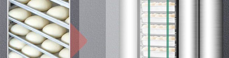 VF系列醒發箱,熱風循環、恒溫發酵。熱氣均勻分布,多盤發酵制作美味一樣到底。恒溫醒發箱完美解決利用電熱管,通過電子溫度控制電路,密封保濕循環發熱使箱內產生相對濕度為80-85%